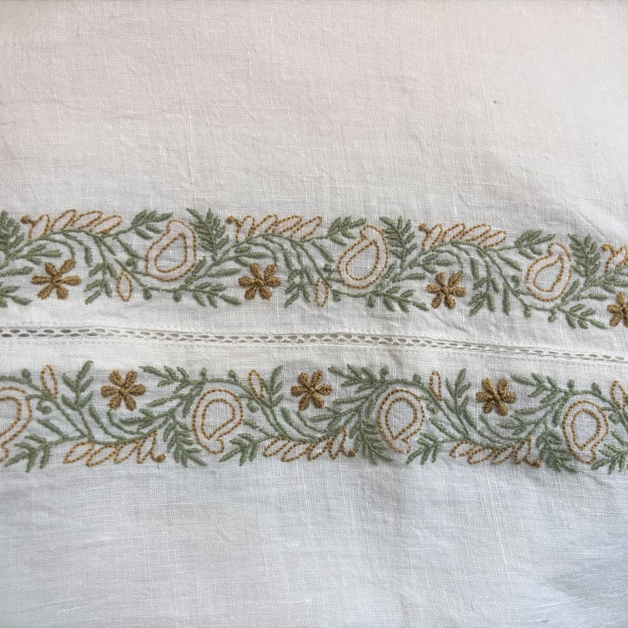 This product is hand embroidered and will have slight difference in motif placement. Variations in exact texture, colour and size can occur. Colours are represented as accurately as possible but may vary slightly from what is seen on screen.